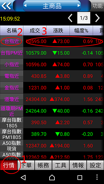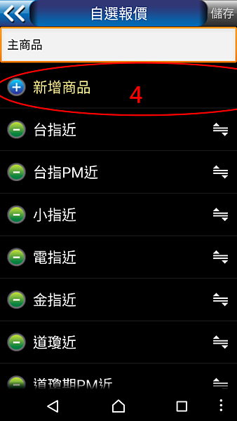 1. 主商品(族群):加入喜歡的商品後就點回【行情】→【自選股】→【主商品】,就會看到選好的報價了。