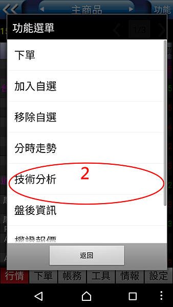 2. 長按商品:可以找到,看盤最重要的【技術分析】以及【分時走勢】功能。