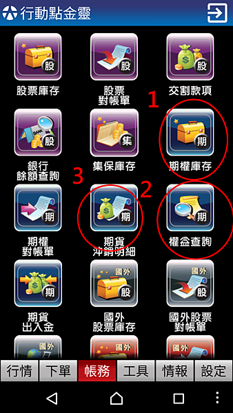1. 期權庫存:顧名思義,就是你持有的商品部位,不用再慢慢找平倉健了!可以直接長按商品報價進行平倉!!