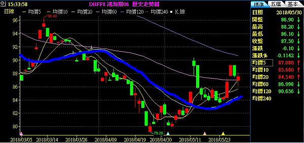 以鴻海期貨及電指期貨舉例來說,假設鴻海期06股價在月線之上,電指股價在月線之下(碰到月線),則做多較強的鴻海期貨及做空較弱的電指期。